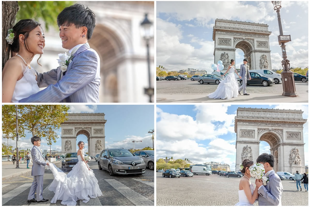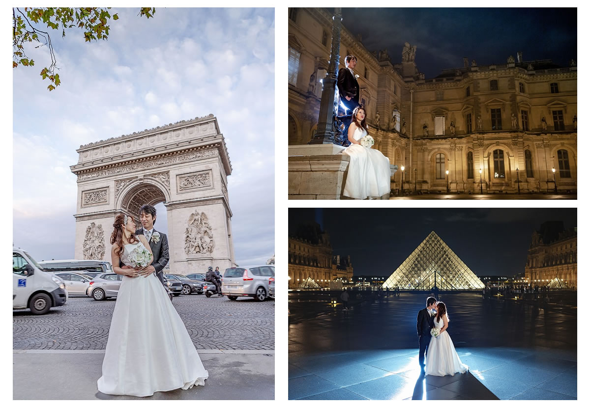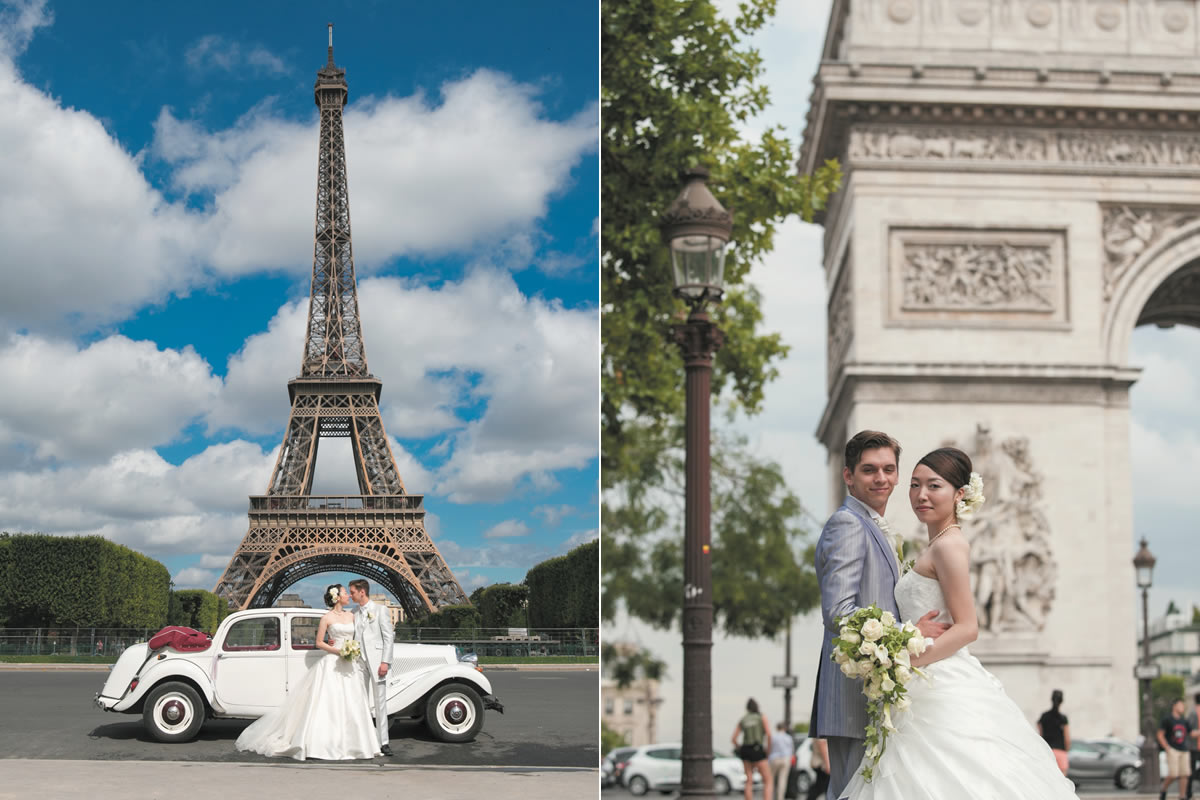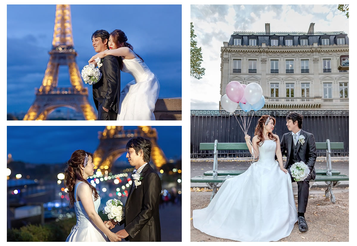 パリはエッフェル塔、ルーヴル美術館、凱旋門、アレクサンドル三世橋、ビラケイム橋などからプラン回数に応じて選択可能です。
